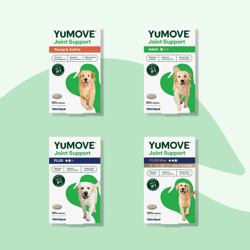 Just like humans, some young dogs can experience joint stiffness day to day, or after being particularly active. YuMOVE Joint Care for Young Dogs offers support for growing and active joints. Our blog Does your younger dog need joint support too? will give you more advice.