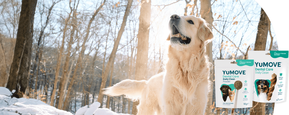 Cleaning your dog’s teeth isn’t always easy. Here, Dr Charlotte Rice, our in-house Senior Veterinary Technical Manager, explains how YuMOVE Daily Clean can help you create a lasting dental hygiene habit (alongside your best brushing) that you and your dog will love.